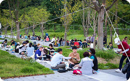 생태습지원 잔디밭에서 달빛을 조명 삼아 아름다운 공연이 펼쳐집니다.